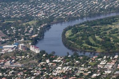 | Keywords: outdoor aerial Aerial photo of a bend in the Brisbane River, with Sir John Chandley Park on the far shore, Yeronga at bottom, and Tennyson to the left and top. The tall buildings by the river are high-rise apartments, and the large flat building is the Queensland Tennis Centre (the blue areas near it are tennis courts). CC0 waiver: To the extent possible under law, I waive all copyright and related or neighboring rights to this work. Aerial photo of a bend in the Brisbane River, with Sir John Chandley Park on the far shore, Yeronga at bottom, and Tennyson to the left and top. The tall buildings by the river are high-rise apartments, and the large flat building is the Queensland Tennis Centre (the blue areas near it are tennis courts). CC0 waiver: To the extent possible under law, I waive all copyright and related or neighboring rights to this work. |