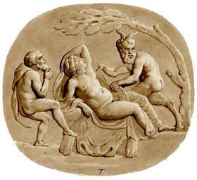| Keywords: British Museum - Silenus, Hermaphroditus, Pan.JPG en Drawing of a cameo with Hermaphroditus reclining on a rock covered with a lion-skin under a tree; Pan lifts Hermaphroditus's garment while Silenus looks on Pen and ink and brown wash on a sheet of paper which is stuck down onto a second sheet together with 2010 5006 651 and 652; the assemblage framed in a graphite border http //www britishmuseum org/research/search_the_collection_database/search_object_details aspx objectid 3350190 partid 1 searchText Gem+3768 fromADBC ad toADBC ad titleSubject on numpages 10 images on orig 2fresearch 2fsearch_the_collection_database aspx currentPage 1 British Museum collection Taylor Combe's collection mark for Charles Townley 1768 - 1805 PD-art Androgyny in ancient art Sculptures of Silenus Hermaphroditus Sculptures of Pan Hermaphroditus and Silenus Lion fur-skins in art |
