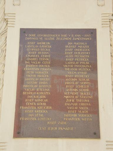 Keywords: Brno hlavni nadrazi 4.JPG cs Památník padlým zaměstnanců železnice za okupace - na budově hlavního nádraží v Brně own Lasy 2008-07-08 uvolňuji dílo Brno hlavní nádraží World War II memorials in Brno Plaques in Brno