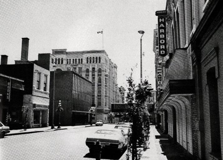 | Keywords: road blackandwhite architecture black and white 1200-block Broad Street in Victoria, BC, circa-1977. View looking south towards View Street. At the end of the street, on the south side of View Street, is the Eaton's Department Store complex. The large Victorian building was originally the grand Driard Hotel (1892) which was purchased by David Spencer for his department store after the great fire of 1910. He later sold his department stores to the T. Eaton Company in 1948. The enitre complex was demolished for the construction of the Eaton's Centre mall development (1989-90)(now the Bay Centre). Some of the heritage buildings' façades that were demolished were partially reconstructed as part of the mall's exterior. 1200-block Broad Street in Victoria, BC, circa-1977. View looking south towards View Street. At the end of the street, on the south side of View Street, is the Eaton's Department Store complex. The large Victorian building was originally the grand Driard Hotel (1892) which was purchased by David Spencer for his department store after the great fire of 1910. He later sold his department stores to the T. Eaton Company in 1948. The enitre complex was demolished for the construction of the Eaton's Centre mall development (1989-90)(now the Bay Centre). Some of the heritage buildings' façades that were demolished were partially reconstructed as part of the mall's exterior. |
