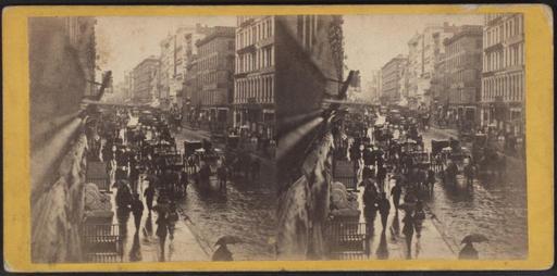 | Keywords: Broadway on a rainy day, by E. & H.T. Anthony (Firm) 8.jpg Broadway_on_a_rainy_day _by_E _ _H T _Anthony_ Firm _8 png Approx 72 000 stereoscopic views 10 x 18 cm or smaller Stephen A Schwarzman Building / Photography Collection Miriam and Ira D Wallach Division of Art Prints and Photographs MFY Dennis Coll 91-F184 G91F184_054F 624314 8-31-2005; updated 2-11-2009 PD-old Robert N Dennis collection of stereoscopic views Broadway | ||||