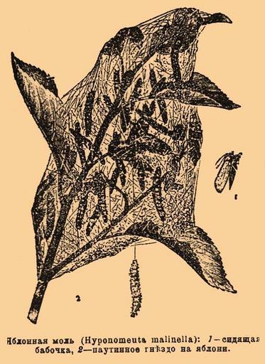 | Keywords: Brockhaus-Efron Hyponomeuta malinella 2.jpg  Иллюст ация к статье Яблонная моль из энциклопедии Б окгауза и Еф она http //dic academic ru/dic nsf/brokgauz_efron/146994 ~ 1905 Б окгауз и Еф он PD-Brockhaus Efron Yponomeuta malinellus caterpillar |