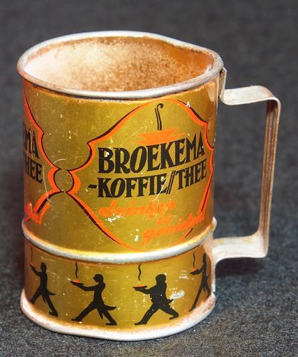 | Keywords: Broekema Koffie-Thee loodje, blikken maatbekertje, foto4.JPG Very old product that is not produced and not sold any more Note that some tins may look the same but when looked for carefully there are some slight differences Photographed at a collector of Droste memorabilia and old tin cans For more info see http //www tincollectors nl/ tincollectors nl or email info tincollectors nl own 2014-02-08 11 17 43 Alf van Beem CC-Zero Trademarked Broekema | ||||