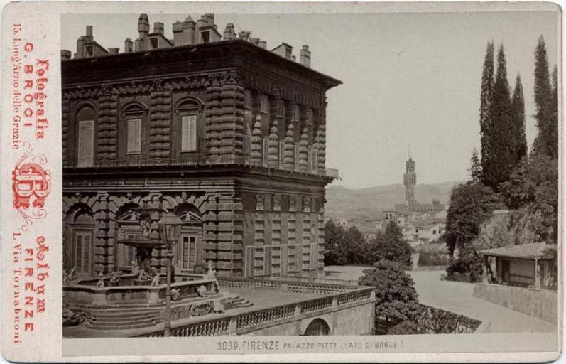 | Keywords: Brogi, Giacomo (1822-1881) - n. 3039 - Firenze - Palazzo Pitti (lato di Boboli).jpg Giacomo Brogi 1822-1881 Firenze - Palazzo Pitti lato di Boboli Numero di catalogo 3039 Giacomo Brogi 1822-1881 Florence - Palazzo Pitti side of Boboli gardens Catalogue 3039 <gallery> File Brogi Giacomo 1822-1881 - n 3039 - Firenze - Palazzo Pitti lato di Boboli jpg 1870s File Florenz-PalazzoPitti jpg 2007 </gallery> scan s 1870 Creator Giacomo Brogi PD-old-100 Historical images of Florence by Giacomo Brogi 3039 Historical images of Palazzo Pitti Florence 3039 Stereo cards of Florence Palazzo Pitti Garden facade of Palazzo Pitti 1870s Boboli Gardens Florence in the 1870s |
