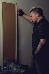 Keywords: broken mirror reflection people white young male person portrait men man model human studio looking tattoos anger sadness shatter