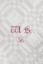 | Keywords: Bröllopslinne. Monogram - Hallwylska museet - 87258.tif DUK och SERVETTER trettioen stycken två dussin och sju stycken Duk Med längdgående mittsöm Längd omkring 5 3 cm ; bredd omkring 2 14 m Servetter Mönster fällning och märkning siffertalet här 36 som på duken Sidlängd omkring 79 cm <br/><br/>Gåva till Wilhelmina Kempe till hennes brudutstyrsel år 1865 från hennes föräldrar Wilhelm Heinrich Henrik Kempe och Johanna Kempe original caption Bröllopslinne Monogram HWY Gr VIII I B a 01 <br/> Nyckelord Detalj Monogram Bröllopslinne Linne Föremålsbild Textilier Vit Röd HWY place of origin original filename hm_dig4897_11831 19094 inventory number HWY VIII I B a 01 87258 CC-BY-SA Jens Mohr Jens Mohr White textiles Red Textile napkins Media contributed by LSH unmatched objKeyword Media contributed by LSH unmatched keyword Monograms WK WK letter combinations Monograms embroidered Media contributed by LSH 2013-10 |