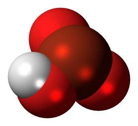 | Keywords: Bromic acid molecule spacefill.png Space-filling model of the bromic acid molecule an oxoacid of bromine in an oxidation state of +5 Color code F0F0F0 Hydrogen H white<br> F51E1E Oxygen O red<br> B42814 Bromine Br red-brown<br> 2011-11-21 own DS Visualizer Jynto talk Ball-and-stick version cc-zero Images by Jynto Bromic acid |
