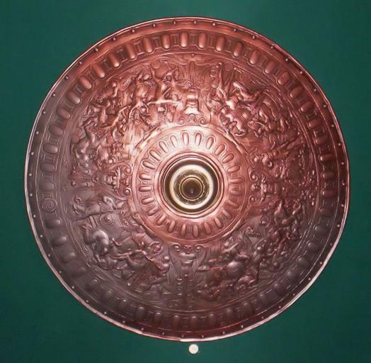 Keywords: Bronz dÃszpajzs.jpg Ezüstözött bronz dÃszpajzs 19 század d 560 mm ; h 160 mm ; m 1 93 kg A CsÃki Székely Múzeum tulajdona “ photo taken by uploader User Csanády in 2006 2006-08-23 own assumed Csanády Round shields