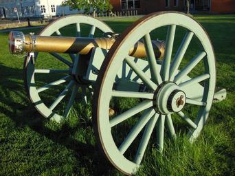Keywords: bronze cannon lavette oak wheels ball cannon lavette of raw oak three-pound cannon cannon 1700s denmark nyborg green brown bronze grass weapon