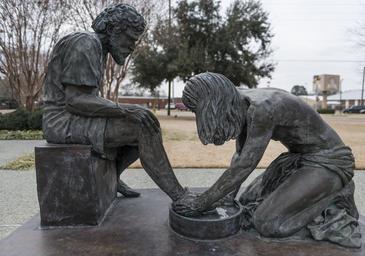 | Keywords: Bronze statue of Jesus washing the disciple Peter's feet in Witness Park outside the "Prayer Tower," perhaps the most recognizable landmark in Pittsburg, Texas LCCN2014630258.tif 1 photograph digital tiff file color Notes Sculpture Divine Servant by Max Greiner 1990 Source A comprehensive guide to outdoor sculpture in Texas C Little 1996 ; Forms part of Lyda Hill Texas Collection of Photographs in Carol M Highsmith's America Project in the Carol M Highsmith Archive ; The tower was a gift to the city from businessman Lonnie Bo Pilgrim whose family runs the Pilgrim's Pride Corp the largest chicken producer in the United States ; Title date and keywords based on information provided by the photographer ; Gift; The Lyda Hill Foundation; 2014; DLC/PP-2014 054 ; Credit line The Lyda Hill Texas Collection of Photographs in Carol M Highsmith's America Project Library of Congress Prints and Photographs Division 2014 Creator Carol M Highsmith Library of Congress Catalog http //lccn loc gov/2014630258 Image download https //cdn loc gov/master/pnp/highsm/26000/26058a tif Original url http //hdl loc gov/loc pnp/highsm 26058 No known restrictions on publication LOC-image highsm 26058 PD-Highsmith Images uploaded by Fæ Lyda Hill Texas Collection of Photographs in Carol M Highsmith's America Project in the Carol M Highsmith Archive The Lyda Hill Texas Collection of Photographs in Carol M Highsmith's America Project Library of Congress Prints and Photographs Division Photographs by Carol M Highsmith |
