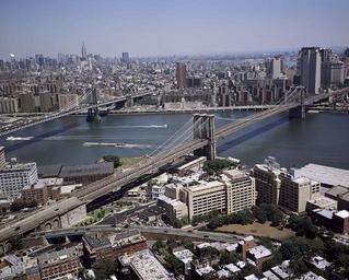Keywords: brooklyn bridge manhattan skyline view landmark nyc new york city urban cityscape metropolis river skyscraper usa scenic
