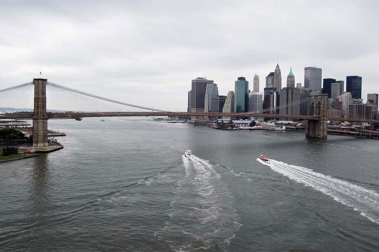Keywords: Brooklyn Bridge boat yacht sky building architecture waterscape skyline island New York Manhattan city
