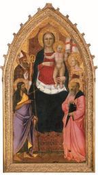| Keywords: Brooklyn Museum - Madonna and Child Enthroned with Saints Zenobius John the Baptist Reparata and John the Evangelist - Nardo di Cione.jpg Artwork Q19858551 creator Nardo di Cione Madonna and Child Enthroned with Saints Zenobius John the Baptist Reparata and John the Evangelist ~ 1355 tempera tooled gold panel cm 196 9 100 3 Institution Brooklyn Museum Brooklyn Museum location europe Healy Purchase Fund B; Gift of Mrs S S Auchincloss James A H Bell Mrs Tunis G Bergen Mrs Arthur Blake Leonard Block Mary A Brackett Mrs Charles Bull in memory of Noel Joseph Becar Sidney Curtis Mrs Watson B Dickerman Forrest Dryden the estate of George M Dunaif Marion Gans Francis Gottsberger in memory of his wife Eliza bequest of Anne Halstead Mrs William H Haupt A Augustus Healy William H Herriman Mrs Alexander Howe Julian Clarence Levi the Martin estate bequest of Emilie Henriette Mayr in memory of her brother and sister-in-law Mr and Mrs George Mayr Mrs Richard Norsam Meade in memory of Margery Moyca Newell Bernard Palitz Richman Proskauer Charles A Schieren the estate of Isabel Shults Mr and Mrs Daniel H Silberberg Austin Wolf Mrs Hamilton Wolf and Mrs Henry Wolf by exchange http //www brooklynmuseum org/opencollection/objects/4963/Madonna_and_Child_Enthroned_with_Saints_Zenobius_John_the_Baptist_Reparata_and_John_the_Evangelist Online Collection of Brooklyn Museum; Photo Brooklyn Museum 1995 2_reference_SL1 jpg 1995 2 Brooklyn_Museum-no_known_restrictions PD-old-100 Nardo di Cione Paintings from Italy in the Brooklyn Museum Christian paintings in the Brooklyn Museum Cione 1355 paintings 14th-century paintings of Madonna and Child 14th-century paintings of John the Baptist 14th-century paintings of Saint John the Evangelist Saint Reparata Saint Zenobius Paintings of Madonna and Child in the United States Paintings of Madonna and Child with Saint John Squirrel clothing in art |