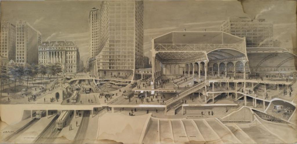 Keywords: Brooklyn Museum - Sectional View Showing Traffic Facilities at the Brooklyn Bridge - Harry M. Pettit.jpg Artwork Creator Harry M Pettit Sectional View Showing Traffic Facilities at the Brooklyn Bridge in Connection with Proposed Manhattan Terminal between 1910 1914 India ink and wash touched with opaque white cm 66 7 139 Institution Brooklyn Museum Brooklyn Museum location american art Artwork-provenanceorcl gift the Department of Public Works Bureau of Bridges City of New York http //www brooklynmuseum org/opencollection/objects/90950/Sectional_View_Showing_Traffic_Facilities_at_the_Brooklyn_Bridge_in_Connection_with_Proposed_Manhattan_Terminal_ Online Collection of Brooklyn Museum; Photo Brooklyn Museum 2006 67 55 2_PS1 jpg 67 55 2 Brooklyn_Museum-no_known_restrictions PD-old-70 Harry M Pettit American art in the Brooklyn Museum New York City in art |