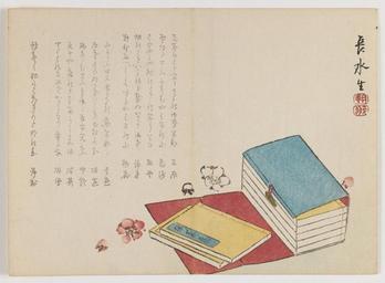 | Keywords: Brooklyn Museum - Set of Books with Cherry Blossoms - Chôsui Yabu.jpg Artwork Creator Chôsui Yabu Set of Books with Cherry Blossoms between 1858 1862 Woodblock print <br /> Chûban <br /> yoko-e cm 18 1 24 8 Institution Brooklyn Museum Brooklyn Museum location asia Artwork-provenanceorcl gift Dr Eleanor Z Wallace Dr Stanley Wallace ja signature Chôsui sei ja seal Shûtei http //www brooklynmuseum org/opencollection/objects/164549/Set_of_Books_with_Cherry_Blossoms Online Collection of Brooklyn Museum; Photo Brooklyn Museum 2002 121 29_IMLS_PS3 jpg 2002 121 29 Brooklyn_Museum-no_known_restrictions PD-old-100 Chōsui Yabu Asian art in the Brooklyn Museum Sakura in art Books in art |