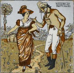 | Keywords: Brooklyn Museum - Tile - Walter T. Crane.jpg Artwork Creator Walter T Crane Wheeling Pottery Company Tile ca 1890 Transfer-printed polychromed glazed earthenware cm 15 2 15 2 0 8 Institution Brooklyn Museum Brooklyn Museum location decorative Purchased with funds given by Barbara Jakobson Molded marks on reverse 44 WHEELING / circle divided in half with molded 3 and 1 in either half 2 on its side CUSHION REG Where are you going to my pretty maid caption top right en inscription no signature inscription Artist's monogram recto lower proper corner http //www brooklynmuseum org/opencollection/objects/116724/Tile Online Collection of Brooklyn Museum; Photo Brooklyn Museum 2008 1989 70_PS2 jpg 1989 70 Brooklyn_Museum-no_known_restrictions PD-old-auto-1923 1915 DEFAULTSORT Crane Walter; tile 1890; Brooklyn Museum Walter Crane Ceramic tiles in the Brooklyn Museum Flirting in art |