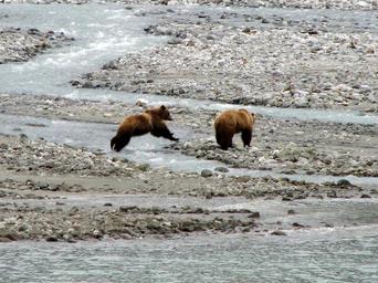 Keywords: brown bears water standing jumping wildlife nature predator looking portrait wilderness brown fur stream river creek