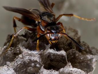 | Keywords: Brown Paper Wasp-27527-6.jpg A female Brown Paper Wasp Polistes fuscatus guarding her nest <br>Photo taken with an Olympus E-5 in Caldwell County NC USA <br>Cropping and post-processing performed with Adobe Lightroom http //www kenthomas us KenThomas us <br> personal website of photographer 2012-05-18 18 23-05 <sup>ISO 8601</sup> Ken Thomas This image is released to the public domain and therefore no permission or credit is required <br>Comments and/or feedback however are always welcome Please see my user page or http //kenthomas us my personal website for details and contact info Polistes fuscatus Taken with Olympus E-5 Caldwell County North Carolina |