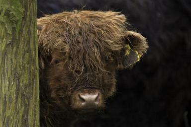 Keywords: brown scottish highlander cow cattle calf nature animal