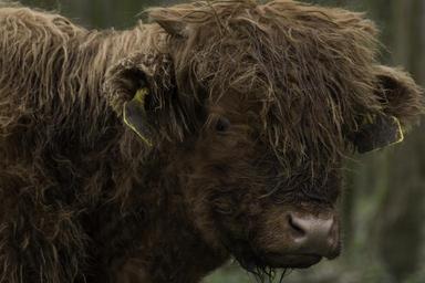 Keywords: brown scottish highlander cow cattle forest scottish highlanders calf animals