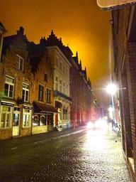 Keywords: bruges night light homes at night night image yellow orange lighting long shutter building
