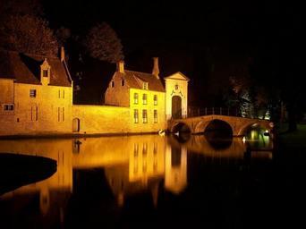 Keywords: bruges town village night reflection water illuminated evening river building light architecture landscape urban scene colorful landmark old