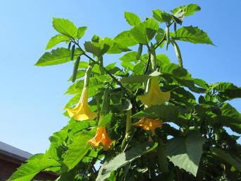 Keywords: brugmansia flowers nightshade yellow flower bloom yellow flower nature yellow flowers blue sky in bloom flourish garden