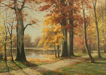 Keywords: Bruno Moras - See im Buchenwald.jpg Artwork Creator Bruno Moras oil canvas cm 71 101 object history credit line accession number http //www lot-tissimo com/de/i/1733326 PD-old-auto 1939 Bruno Moras Autumn landscape paintings