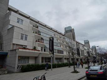 | Keywords: outdoor road architecture building building complex It was designed by Patrick Hodgkinson[2] in the mid-1960s, based on studies by Leslie Martin.[3] It was initially planned as a private development at a time when private, mixed-use development in the UK was rare. Building started in 1967 and was completed in 1972, though the building fell some way short of its intended size. The original plan extended up to Euston Road but the Ministry of Defence would not release the site of a building they leased for use by the Territorial Army (and that still stands next to the Centre today)[citation needed]. After failing to attract sufficient private buyers on time, the residential section was leased to the London Borough of Camden for use as council housing, while the developer retained ownership of the structure and shopping areas. The exterior of the building was never painted because the Borough could not afford to complete work on the building after they took control. In Hodgkinson's design, the blocks would have been painted cream, a shade typical of the Georgian period, as a homage to the terraced houses that previously stood on the site and those that still surround it. Despite being widely disliked by those who are unsympathetic to modernist architecture, it achieved Grade II status in 2000. By this time, however, many of its shop premises were unoccupied. Plans for renovation had repeatedly been blocked by residents' committees but in November 2002, the £22 million project began. This included the painting of the blocks in their originally-planned colour and the commissioning of artist Susanna Heron to introduce water features to the central space.[4][2] The major work was completed in late 2006 with the opening of branches of several high street chain stores and restaurants. The dual management has caused problems though, as the landlord restored the structure of the estate but the council is responsible for maintenance of the residential properties - so while the concrete structure was restored, the windows remained untouched, detracting from the overall aesthetic of the development. In 2007, the council started work on replacing the windows that has resulted in the residents having scaffolding outside their flats for the second time in just a few years. Now referring to itself as The Brunswick, the centre contains 560 flats, various shops, cafés and restaurants, a Waitrose supermarket, and the Renoir Cinema (one of London's Curzon Cinemas group). It was designed by Patrick Hodgkinson[2] in the mid-1960s, based on studies by Leslie Martin.[3] It was initially planned as a private development at a time when private, mixed-use development in the UK was rare. Building started in 1967 and was completed in 1972, though the building fell some way short of its intended size. The original plan extended up to Euston Road but the Ministry of Defence would not release the site of a building they leased for use by the Territorial Army (and that still stands next to the Centre today)[citation needed]. After failing to attract sufficient private buyers on time, the residential section was leased to the London Borough of Camden for use as council housing, while the developer retained ownership of the structure and shopping areas. The exterior of the building was never painted because the Borough could not afford to complete work on the building after they took control. In Hodgkinson's design, the blocks would have been painted cream, a shade typical of the Georgian period, as a homage to the terraced houses that previously stood on the site and those that still surround it. Despite being widely disliked by those who are unsympathetic to modernist architecture, it achieved Grade II status in 2000. By this time, however, many of its shop premises were unoccupied. Plans for renovation had repeatedly been blocked by residents' committees but in November 2002, the £22 million project began. This included the painting of the blocks in their originally-planned colour and the commissioning of artist Susanna Heron to introduce water features to the central space.[4][2] The major work was completed in late 2006 with the opening of branches of several high street chain stores and restaurants. The dual management has caused problems though, as the landlord restored the structure of the estate but the council is responsible for maintenance of the residential properties - so while the concrete structure was restored, the windows remained untouched, detracting from the overall aesthetic of the development. In 2007, the council started work on replacing the windows that has resulted in the residents having scaffolding outside their flats for the second time in just a few years. Now referring to itself as The Brunswick, the centre contains 560 flats, various shops, cafés and restaurants, a Waitrose supermarket, and the Renoir Cinema (one of London's Curzon Cinemas group). |