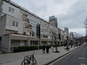 | Keywords: road outdoor building complex architecture building It was designed by Patrick Hodgkinson[2] in the mid-1960s, based on studies by Leslie Martin.[3] It was initially planned as a private development at a time when private, mixed-use development in the UK was rare. Building started in 1967 and was completed in 1972, though the building fell some way short of its intended size. The original plan extended up to Euston Road but the Ministry of Defence would not release the site of a building they leased for use by the Territorial Army (and that still stands next to the Centre today)[citation needed]. After failing to attract sufficient private buyers on time, the residential section was leased to the London Borough of Camden for use as council housing, while the developer retained ownership of the structure and shopping areas. The exterior of the building was never painted because the Borough could not afford to complete work on the building after they took control. In Hodgkinson's design, the blocks would have been painted cream, a shade typical of the Georgian period, as a homage to the terraced houses that previously stood on the site and those that still surround it. Despite being widely disliked by those who are unsympathetic to modernist architecture, it achieved Grade II status in 2000. By this time, however, many of its shop premises were unoccupied. Plans for renovation had repeatedly been blocked by residents' committees but in November 2002, the £22 million project began. This included the painting of the blocks in their originally-planned colour and the commissioning of artist Susanna Heron to introduce water features to the central space.[4][2] The major work was completed in late 2006 with the opening of branches of several high street chain stores and restaurants. The dual management has caused problems though, as the landlord restored the structure of the estate but the council is responsible for maintenance of the residential properties - so while the concrete structure was restored, the windows remained untouched, detracting from the overall aesthetic of the development. In 2007, the council started work on replacing the windows that has resulted in the residents having scaffolding outside their flats for the second time in just a few years. Now referring to itself as The Brunswick, the centre contains 560 flats, various shops, cafés and restaurants, a Waitrose supermarket, and the Renoir Cinema (one of London's Curzon Cinemas group). It was designed by Patrick Hodgkinson[2] in the mid-1960s, based on studies by Leslie Martin.[3] It was initially planned as a private development at a time when private, mixed-use development in the UK was rare. Building started in 1967 and was completed in 1972, though the building fell some way short of its intended size. The original plan extended up to Euston Road but the Ministry of Defence would not release the site of a building they leased for use by the Territorial Army (and that still stands next to the Centre today)[citation needed]. After failing to attract sufficient private buyers on time, the residential section was leased to the London Borough of Camden for use as council housing, while the developer retained ownership of the structure and shopping areas. The exterior of the building was never painted because the Borough could not afford to complete work on the building after they took control. In Hodgkinson's design, the blocks would have been painted cream, a shade typical of the Georgian period, as a homage to the terraced houses that previously stood on the site and those that still surround it. Despite being widely disliked by those who are unsympathetic to modernist architecture, it achieved Grade II status in 2000. By this time, however, many of its shop premises were unoccupied. Plans for renovation had repeatedly been blocked by residents' committees but in November 2002, the £22 million project began. This included the painting of the blocks in their originally-planned colour and the commissioning of artist Susanna Heron to introduce water features to the central space.[4][2] The major work was completed in late 2006 with the opening of branches of several high street chain stores and restaurants. The dual management has caused problems though, as the landlord restored the structure of the estate but the council is responsible for maintenance of the residential properties - so while the concrete structure was restored, the windows remained untouched, detracting from the overall aesthetic of the development. In 2007, the council started work on replacing the windows that has resulted in the residents having scaffolding outside their flats for the second time in just a few years. Now referring to itself as The Brunswick, the centre contains 560 flats, various shops, cafés and restaurants, a Waitrose supermarket, and the Renoir Cinema (one of London's Curzon Cinemas group). |