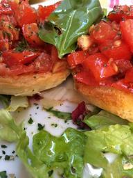 Keywords: bruschetta food italian snack tomato mediterranean basil antipasti delicious baguette appetizer sandwich olive