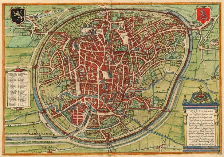 | Keywords: Brussels, belgium, Braun & Hogenberg, 1576.jpg en Antique map of Brussel - Bruxelles by Braun Hogenberg Bruxella Urbs Aulicorum Frequentia Fontium Copia Magnificentia Principalis Aulae - Braun Hogenberg 1576 Bird's-eye plan of Brussels with key to locations Copper engraving Size 33 x 47cm 12 9 x 18 3 inches Verso text German Condition Old coloured From Beschreibung und Contrafactur der Vornembster Stät der Welt Liber Primus Köln 1572 Koeman B H7 http //www sanderusmaps com/antique-maps/europe/brussel--bruxelles_5344 cfm Braun_ _Hogenberg 1576 PD-old-100 Maps of Brussels by Braun Hogenberg |