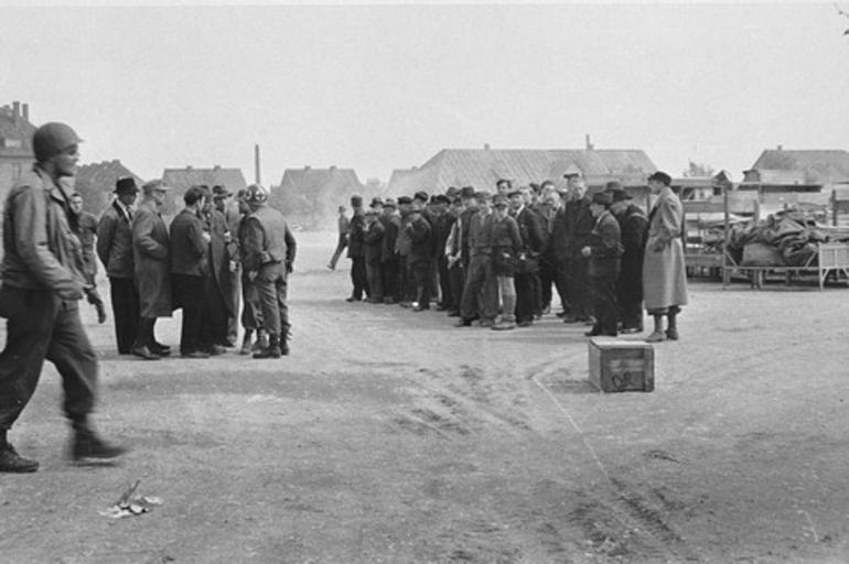 | Keywords: Buchenwald Langenstein Germans Forced Confrontation 10109.jpg German civilians are assembled before being detailed to collect and bury the victims of the Langenstein-Zwieberge concentration camp Photographed by Dr Bernard Metrick Langenstein-Zwieberge Germany April 1945 http //www ushmm org/ United States Holocaust Memorial Museum courtesy of Dr Bernard Metrick PD-USGov Langenstein-Zwieberge concentration camp Images from the United States Holocaust Memorial Museum Allied confrontation of Germans with Holocaust Forced labor of Germans after World War II |