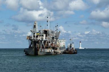 Keywords: Bucket dredger ship Odessa ocean Ukraine Black sea Vorontsov Lighthouse