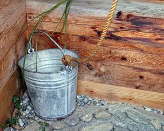 Keywords: bucket fountain bucket metal water rope water bucket draw vessel nostalgia nostalgic rustic simply water supply supply country life castle middle ages