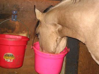 View Original:Buckskin_mare_eating_from_bucket.jpg (2048x1536)