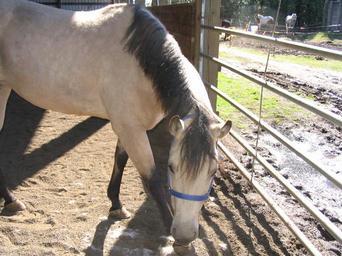 View Original:Buckskin_mare_head_down_next_to_gate.jpg (2048x1536)