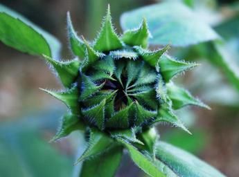Keywords: bud flower sunflower opening outer leaves green centre dark garden