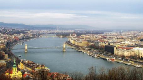 Keywords: budapest bridge landscape scenic outside river sky clouds shore shoreline city cities urban panorama mountains