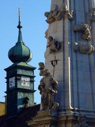 Keywords: budapest buda castle area holy trinity statue blue sky clock tower