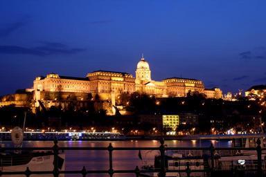 Keywords: Budapest castle night 5.jpg Buda Castle over Danube river Budapest Hungary Budínský hrad přes Dunaj Budapešti Maďarsko own Karelj 2009-04 47 29 49 29 N 19 2 50 02 E Buda Castle at night