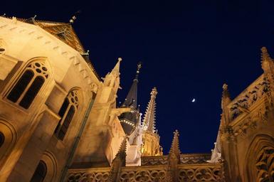 Keywords: budapest church moon night hungary sky travel cathedral landmark building famous hungarian matthias historical europe architecture tourism