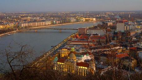 Keywords: budapest hungary sunset lights danube panorama lamplight kékóra bridge