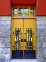Keywords: budapest hungary wekerle battery art nouveau entrance facade color door grid reflection