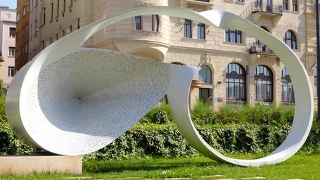 Keywords: budapest monument 15th of march square holocaust course of life spiral shape sculpture funnel numbers arches hungary street statue