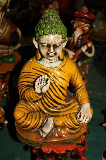 Keywords: buddha ceramic figure green crown yellow buddhism gautam religious asia buddhist