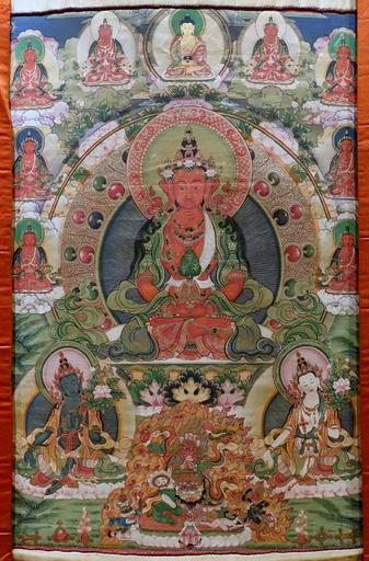| Keywords: Buddha of Longevity, 1644-1911 AD, thangka - Sichuan University Museum - Chengdu, China - DSC06195.jpg en Exhibit in the Sichuan University Museum 四 大学博物馆 - Chengdu Sichuan China Photography was permitted in the museum without restriction This work is old enough so that it is in the public domain 2015-09-26 02 04 27 own Daderot other versions PD-old-100 cc-zero Thangka in the Sichuan University Museum Amitābha | ||||