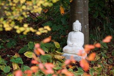 Keywords: buddha marble white sculpture fig statue autumn leaves yellow red