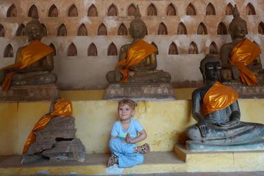 Keywords: buddha wat child meditation girl sitting calm quiet vientiane laos