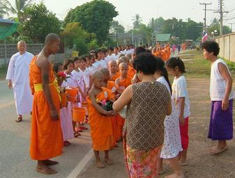 Keywords: Buddhist child 09.JPG คณะสาม ณรกำลัง ดินบิณฑบาตในตอน ช้า novice in the Buddhist religion group receives food from the Buddhist Uttaradit Thailand own 2007 Buddhist monks of Wat Khung Taphao Buddhist alms bowls of Thailand